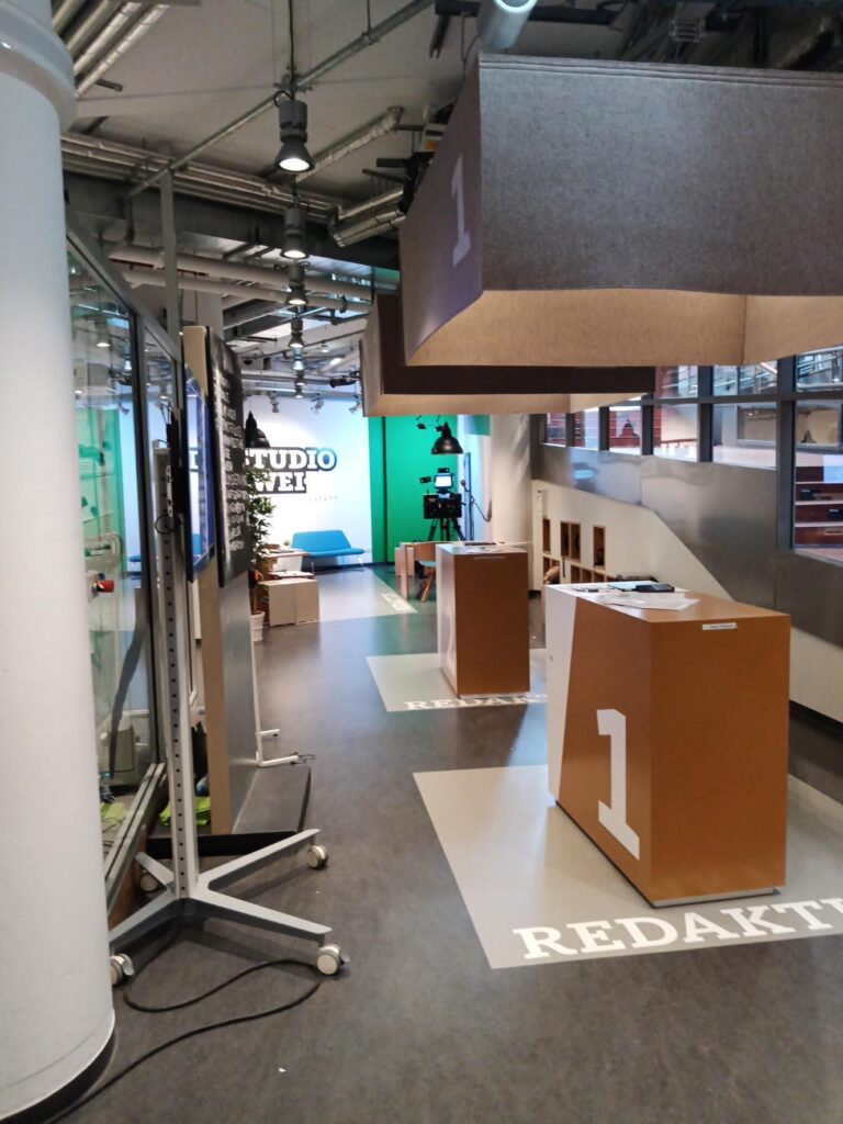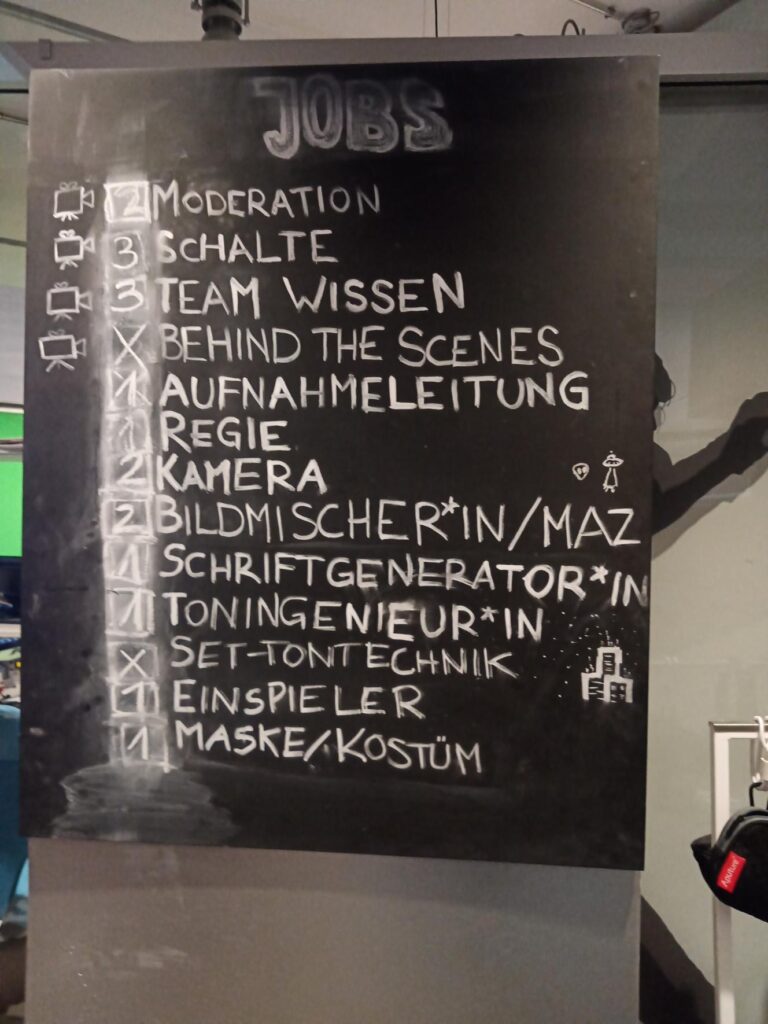 In Teams produzierten sie unter Anleitung eine eigene Magazinsendung. Dabei entstanden verschiedene Beiträge, zum Beispiel eine KorrespondentInnen-Schalte, ein Social-Media-Video, ein Studiogespräch und eine kleine Show-Einlage. Auch die Technik im Studio wurde von den Jugendlichen selbst bedient – von der Kamera bis zur Regie.