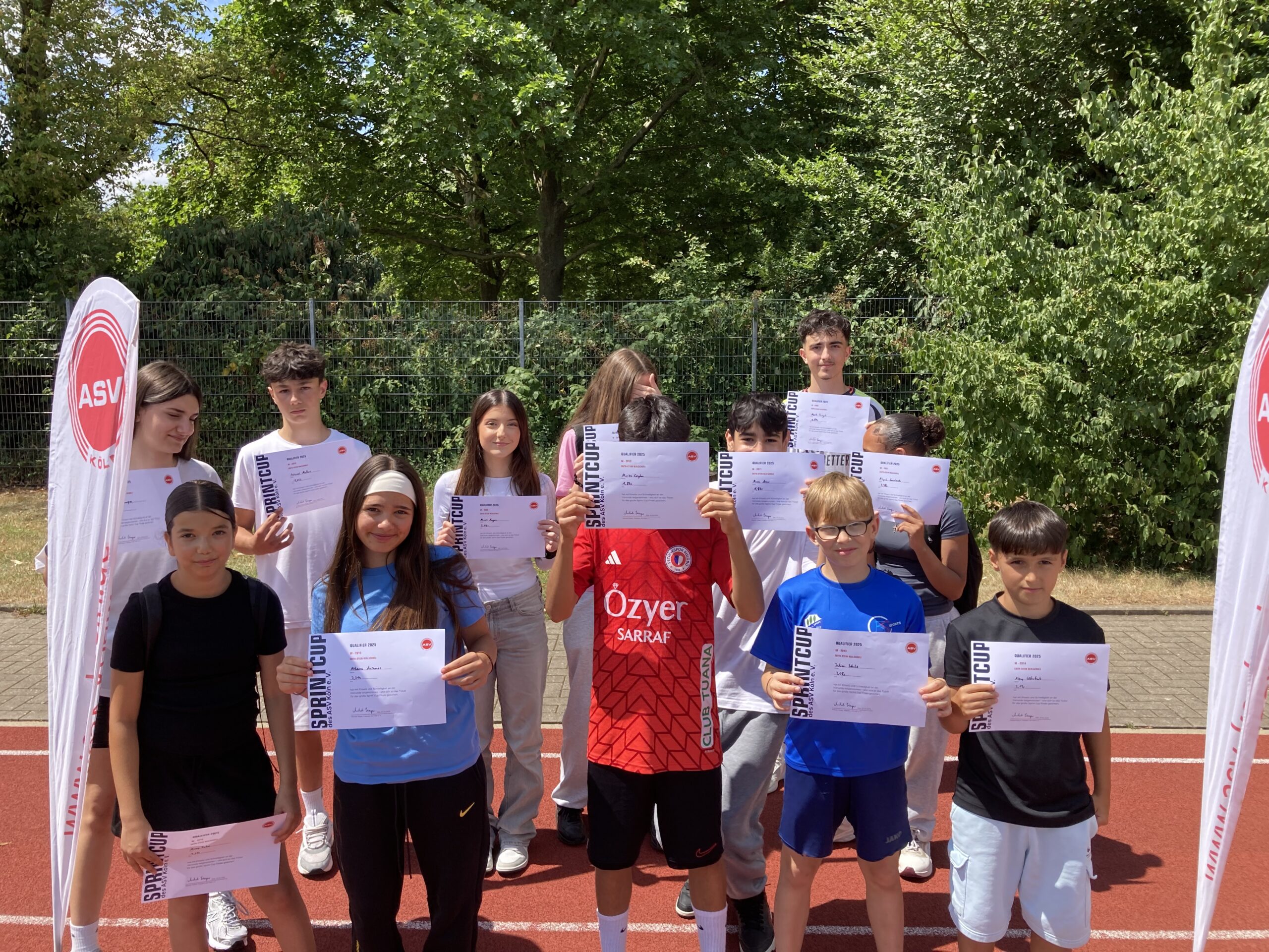 Am Donnerstag, dem 03.07.25, fand bei schönstem Wetter der alljährliche Sprint Cup an unserer Schule statt. Auf dem Sportplatz von Nippes 12 wurde die Vorrunde ausgetragen. Die schnellsten Schüler*innen aus allen Klassen traten gegeneinander an, aufgeteilt in Jahrgang und Geschlecht.
