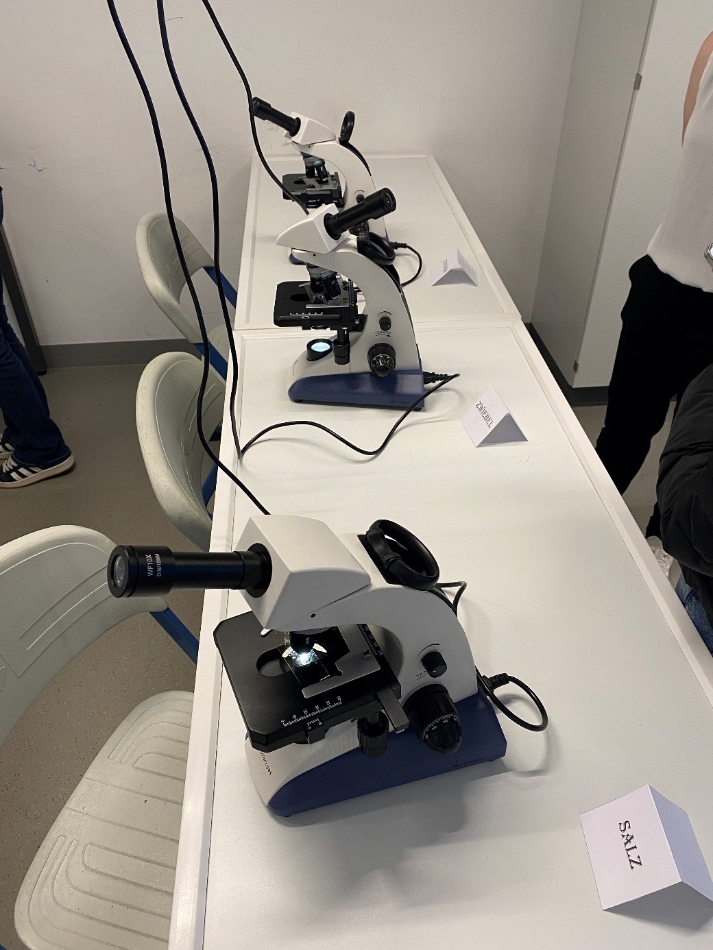 Am 15.11.25 fand an unserer Schule der Tag der offenen Tür statt. Im Biologieraum haben wir mit Frau Schmidt mikroskopiert. Außerdem hat Frau Solf mit ihrer Gruppe etwas zum Thema Bienen und Wespen zum Mitmachen vorgestellt.