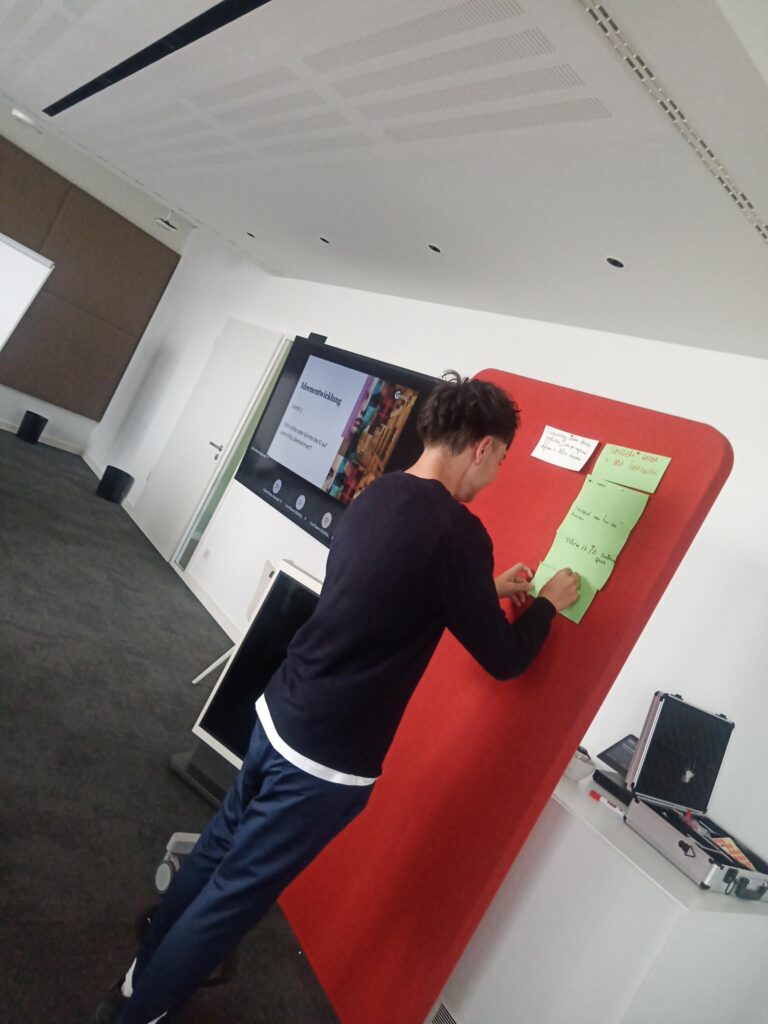 Nach einer lebhaften Diskussion zum Thema Chancen und Risiken der KI durfte die Klasse in Kleingruppen verschiedene KI Tools nutzen, um eine selbstgewählte Marketing Idee zu entwickeln und diese anschließend vor fiktiven Investoren zu pitchen. Es gab vielfältige Ideen zur zukünftigen Nutzung der KI im Alltag, etwa als Ernährungsberater oder zur Erstellung von Hairtutorials. Nach einer gesponserten Pizza zum Mittagessen fand noch ein Jobtalk mit einem Microsoftie statt, eine Führung durch das Office und als besonderes Highlight der Besuch der Dachterrasse.